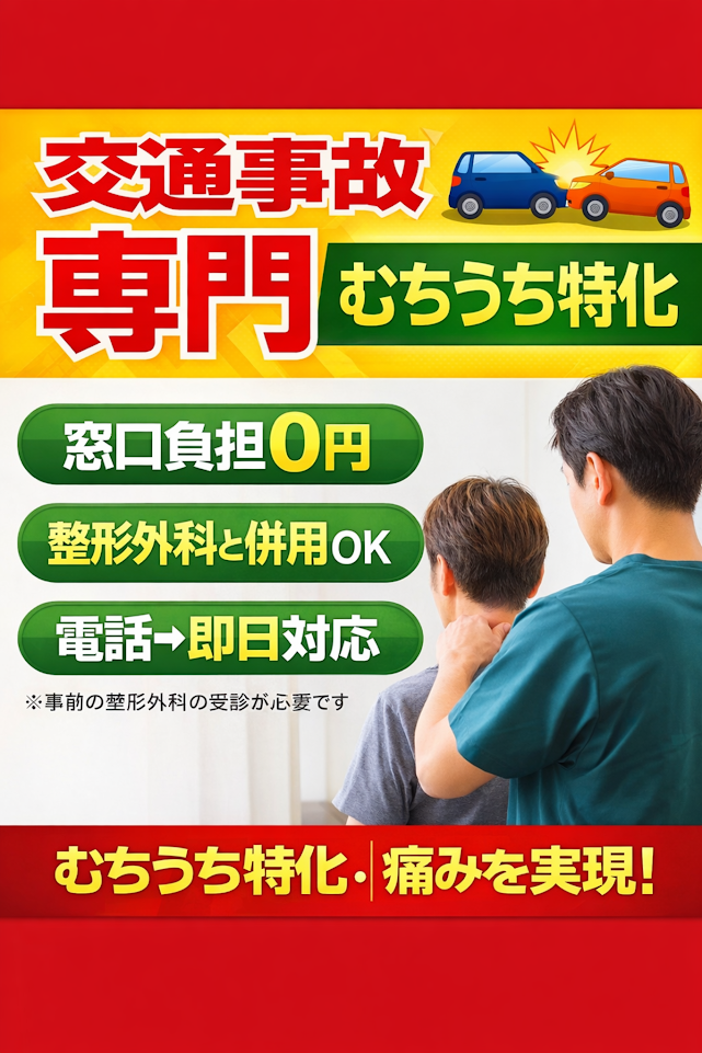 ① 交通事故専門の施術対応